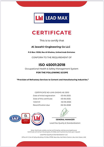 At Al Jawahir Engineering Co LLC, we take pride in being a certified and trusted partner in the industry.